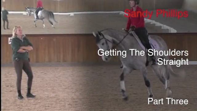 Trailer for Olympian, World renowned Dressage trainer and Eventing judge, Sandy Phillips' session on Getting The Shoulders Straight. Sandy notes many riders today are using too much neck flection and losing the straightness in the shoulders. She explains that riders first have to get the shoulder...