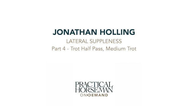 International event rider Jonathan Holling offers a logical and methodical lesson on increasing the suppleness in the lateral work with a focus on the trot half pass and a turn on the haunches. If you struggle with these upper level movements, this video offers a structure to build correct performance of these movements with exercises you can repeat at home.