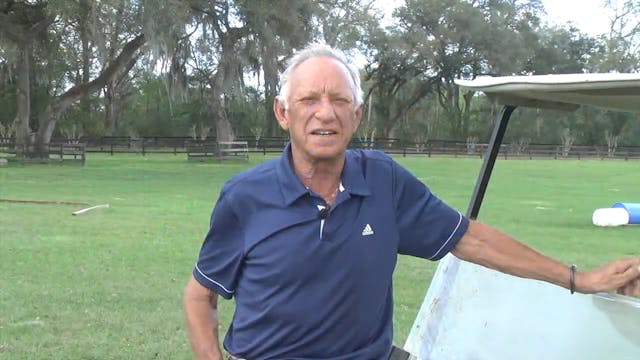 Trailer Olympic Event rider and international breeder, Bruce Davidson's Basic Flatwork session. Working outside, Bruce supports a rider as she develops her flatwork. Exercises include schooling ten meter circles, transitions and flying changes.