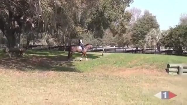 Part 1: Buck works with the rider to use less pressure on the approach and in between fences. He focuses on a soft hand and a soft arm, and following the horse with the body, so as not to go against them in the air. The rider jumps select jumps from the cross country course, and works to apply th...