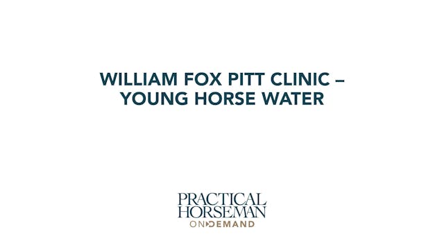 William has riders canter through the water with jumps at beginning and end. He stresses shortening the canter through the water so the horses don't get too long. He then has them take a small jump up and down into the water, through it and out over a jump.