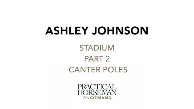 In the prior exercise (PART 03), Ashley Johnson created an exercise by having a square of ground poles with a pole laid diagonally across the middle. Now, she raises the diagonal pole to a low vertical. The Training Level horse improves his canter quality in the exercise and rounding his bascule ...