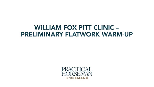 William takes a few moments to watch everyone warm up on the flat. His intention is to get an idea of how the horses go to better understand what they should work on. Generally speaking, he wants the riders to take contact and have the horse in front of the leg.