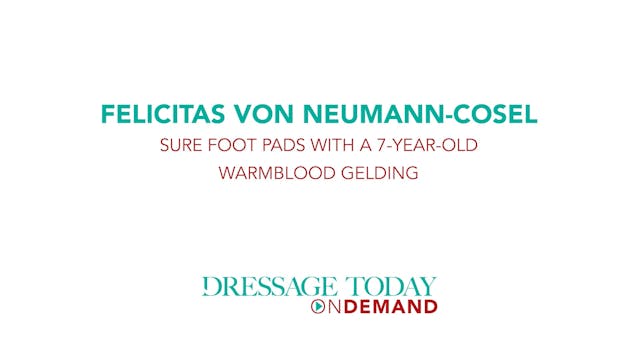 This video features a 9-year-old ex-racehorse just starting back under saddle. Currently she moves short in front with no give in her body, and she has something going on in the left front leg. After trying the pads for the first time, Felicitas feels the mare is more relaxed and reached further ...