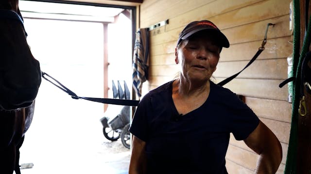 Laurie shares her method of conditioning tack including her tip for making sure not to dry out the tack She also goes over polishing the bit and how she ties up the bridle so it hangs nicely She shares why she like cleaning tack and a story about a special leather lead shank that she took to the ...