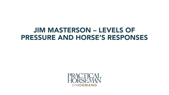 Jim explains what the responses are that he looks for and how to read them He also demonstrates and goes over the different levels of pressure you can use The idea is to use the most pressure without the horse bracing against it He also goes over the three key junctions to check in the horse