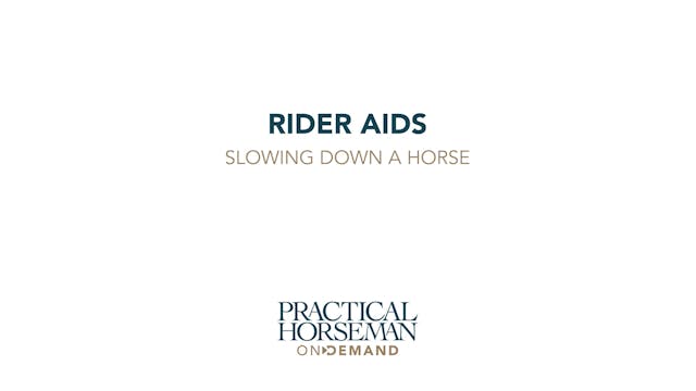 Holly explains how a rider can use her body weight to slow a strong horse. To ask a horse to slow down, first the rider would close her hand. If he didn’t respond, she would then close her hand and bend her elbow. If that didn’t work, she would lean back, being careful not to drive with her seat.