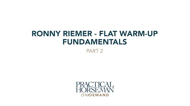 Ronny explains what he likes to see in the flat warm-up, which is a loose, forward horse that flows from the hind end into the rider’s soft hand. When viewed from the side, the rider should have a shoulder, hip, heel alignment. He wants to activate the hind end first before connecting with the hand.