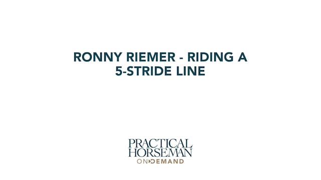 Once properly warmed up, Ronny has the riders work on riding a 5-stride line. The concept is still the same to go straight before the first jump, between the two jumps and then after the second fence. A canter pole before the first jump allows the horse to have one stride before the jump and find...