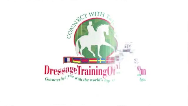 Hilda Gurney rides one of her four year olds , and as they warm up she explains how she warms up a youngster. Her two goals of the warm up are to warm the horse up physically and to get them responsive to the aids. She keeps him round and moving forward, and works on changing the bend through t...