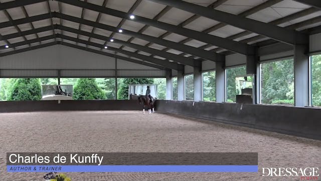 In this auditor-friendly session, Charles de Kunffy guides three riders through a series of exercises to showcase suspension and reach in the lateral work. He has the riders perform a variety of lateral exercises, including shoulder-in, half pass, walk pirouettes, haunches-in and haunches-out, in all three gaits. Done correctly, these movements help improve the horse strength, straightness and suppleness.