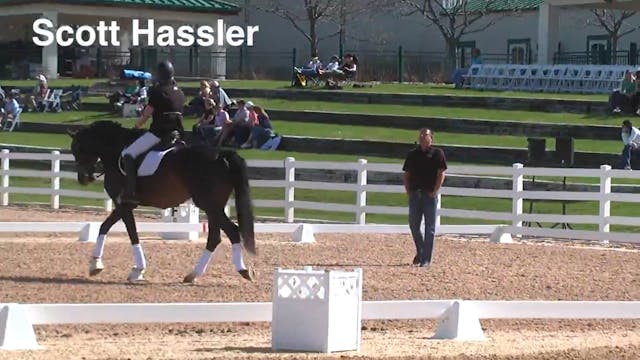 In this video, they incorporate the previous exercises for a much more connected trot half pass. Scott gives them even more lateral exercises to improve the contact.