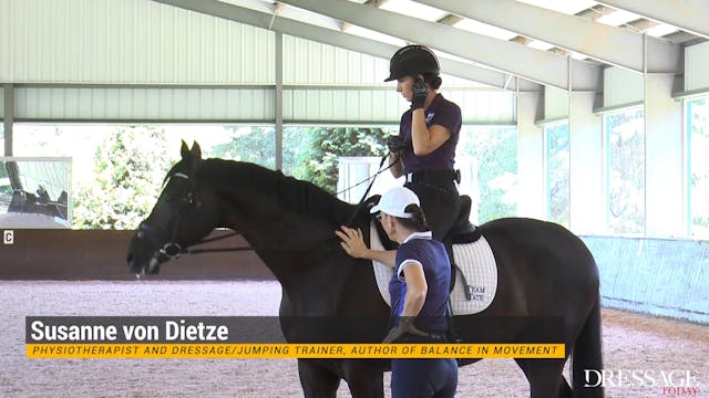 Susanne helps JJ Tate and her horse with the collection and getting the horse to take even steps with his hind end and for him to carry more weight behind.