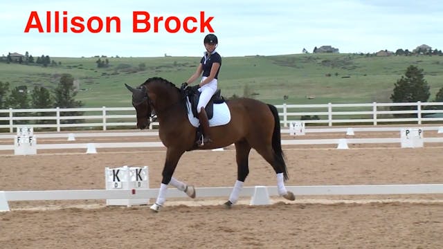 Next, they work on trot half passes asking the horse to come more off the ground and be more responsive to the half halts. They work transitions between medium trot and half steps while keeping the suppleness and elasticity in the contact. Steffen explains that the goal is to create half pass tha...