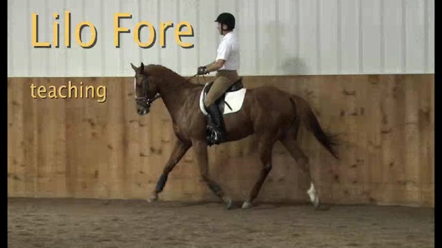 Balance in the Young Event Horse Part 2 Ms Fore assists the rider from the ground with the reinback. They continue with a five loop serpentine at the trot to increase his lateral suppleness.